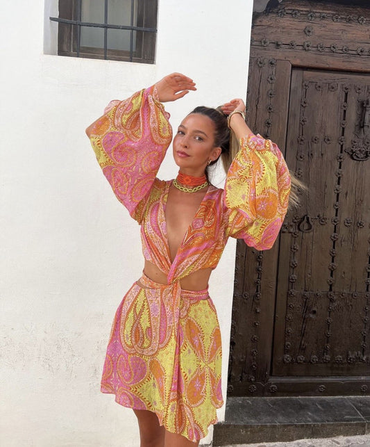 NWT! Commense Semi-Sheer Tiered Draped Tie-Waist Mini Dress sz XS