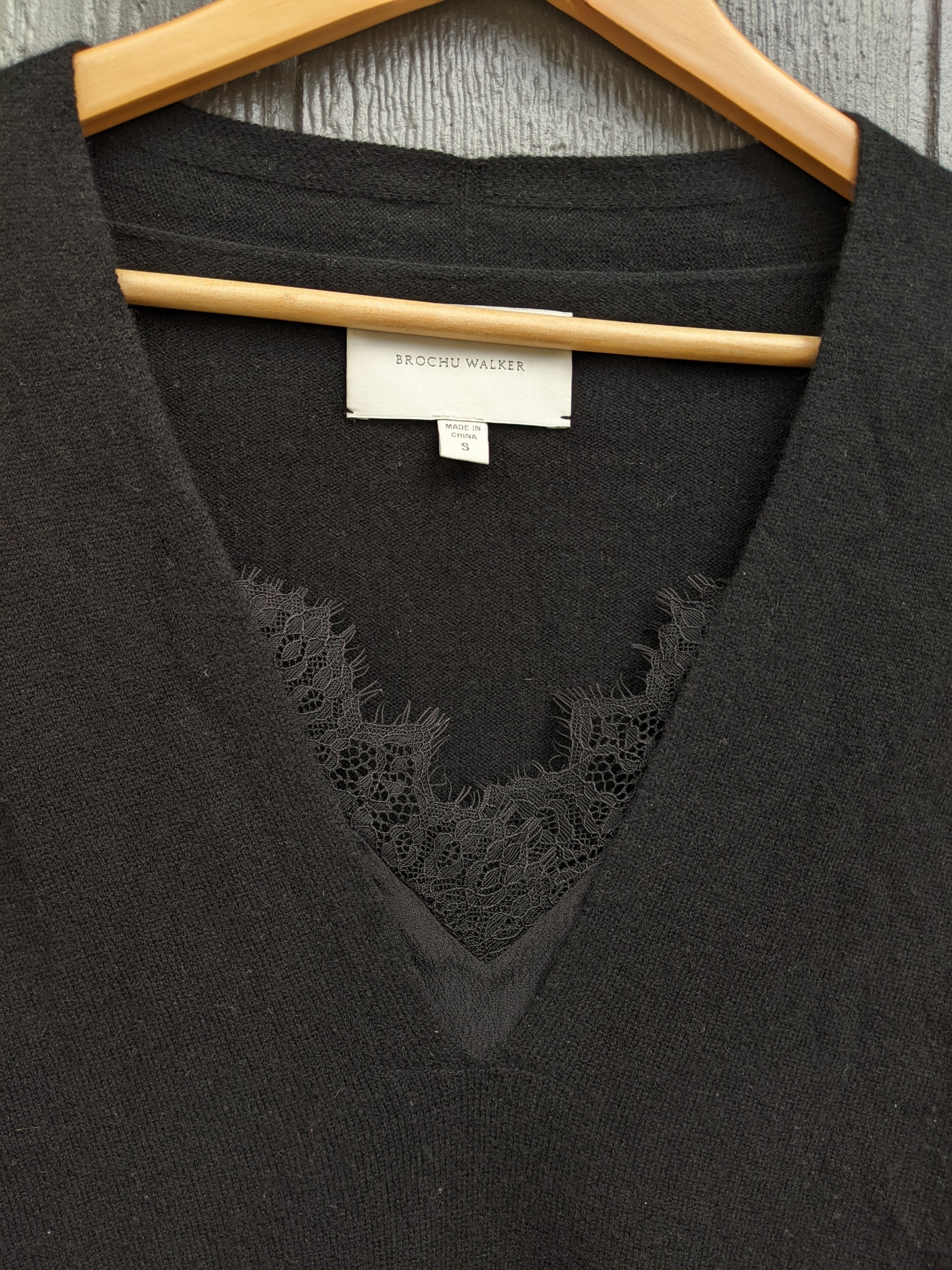 BROCHU WALKER "The Lace Vee Looker cashmere blend Pullover" sz S