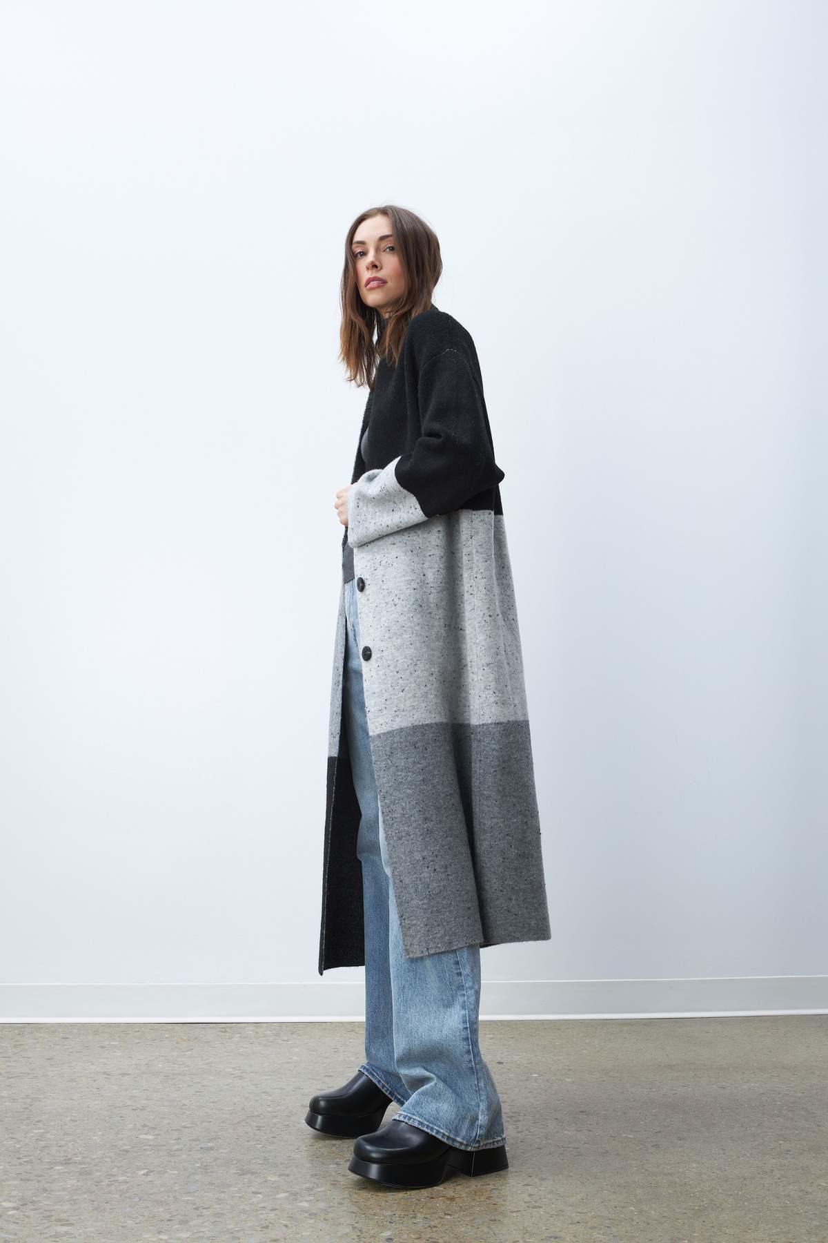 Monochromatic layering in the Jetta knit jacket elevates your daily fall errands.