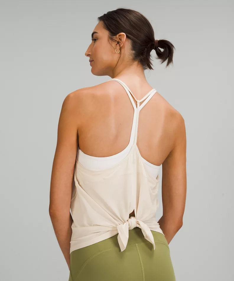You have to feel it to believe it. This t-back yoga tank handles sweat and feels amazing on your skin. Wear it long and loose or tied at the back.