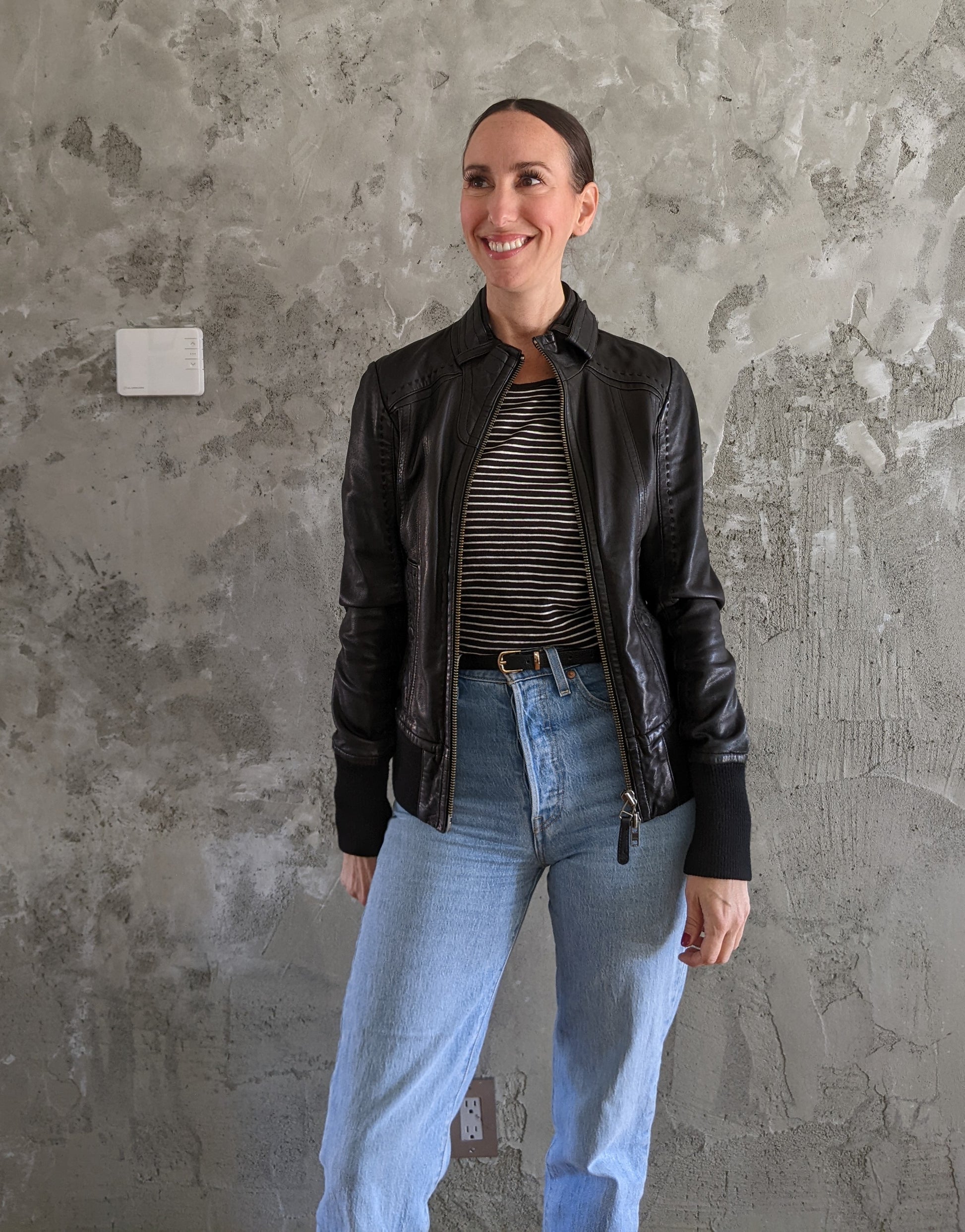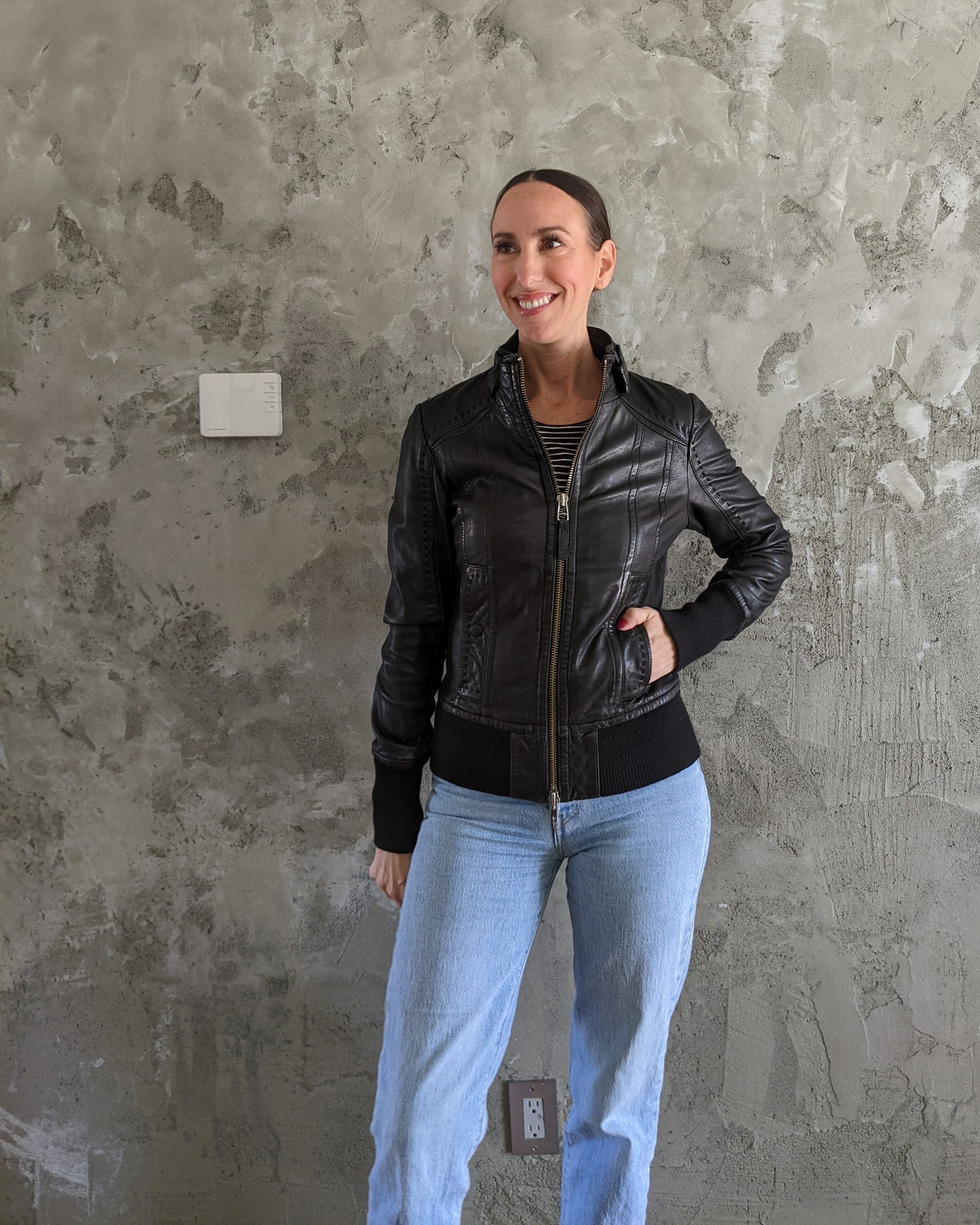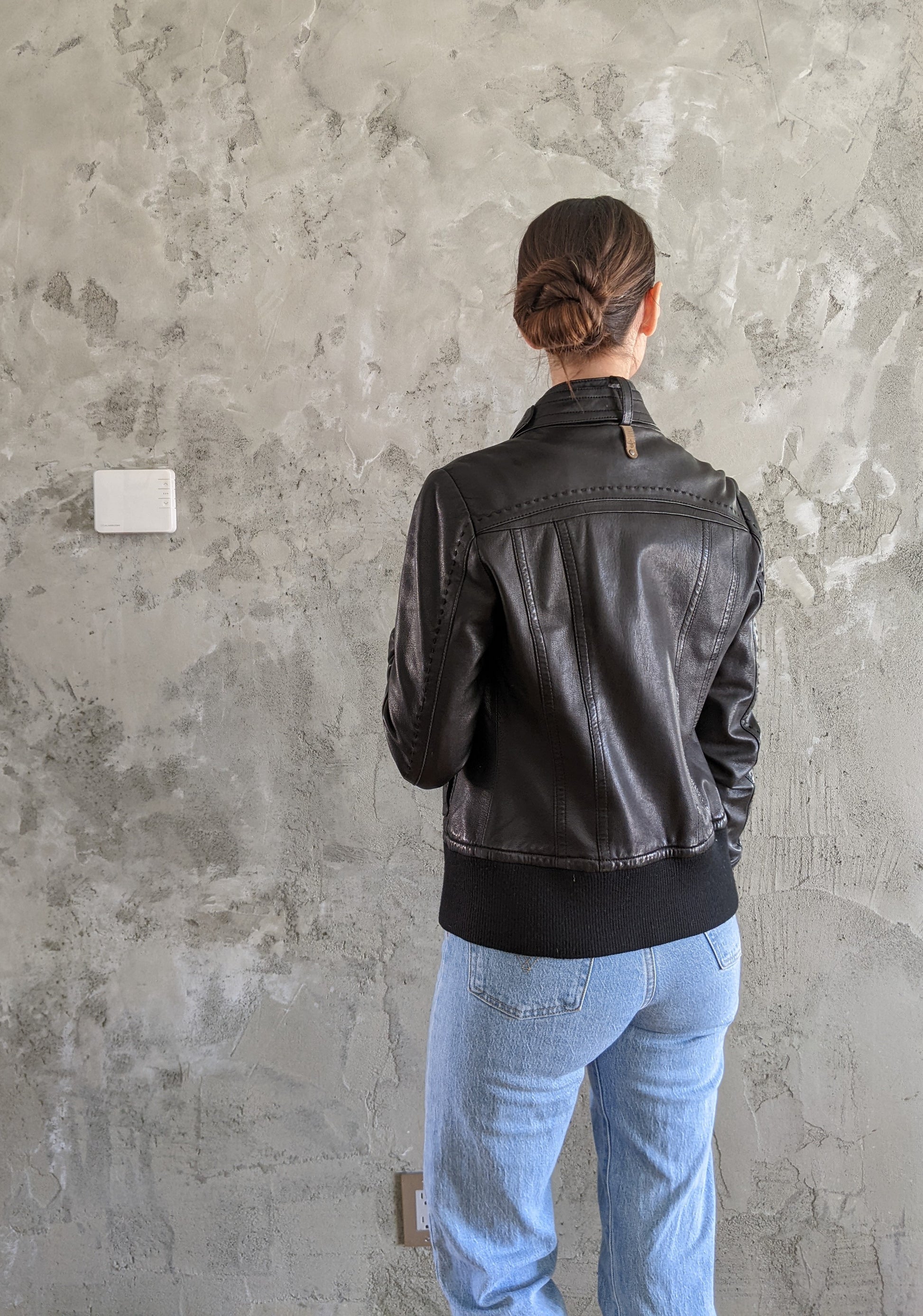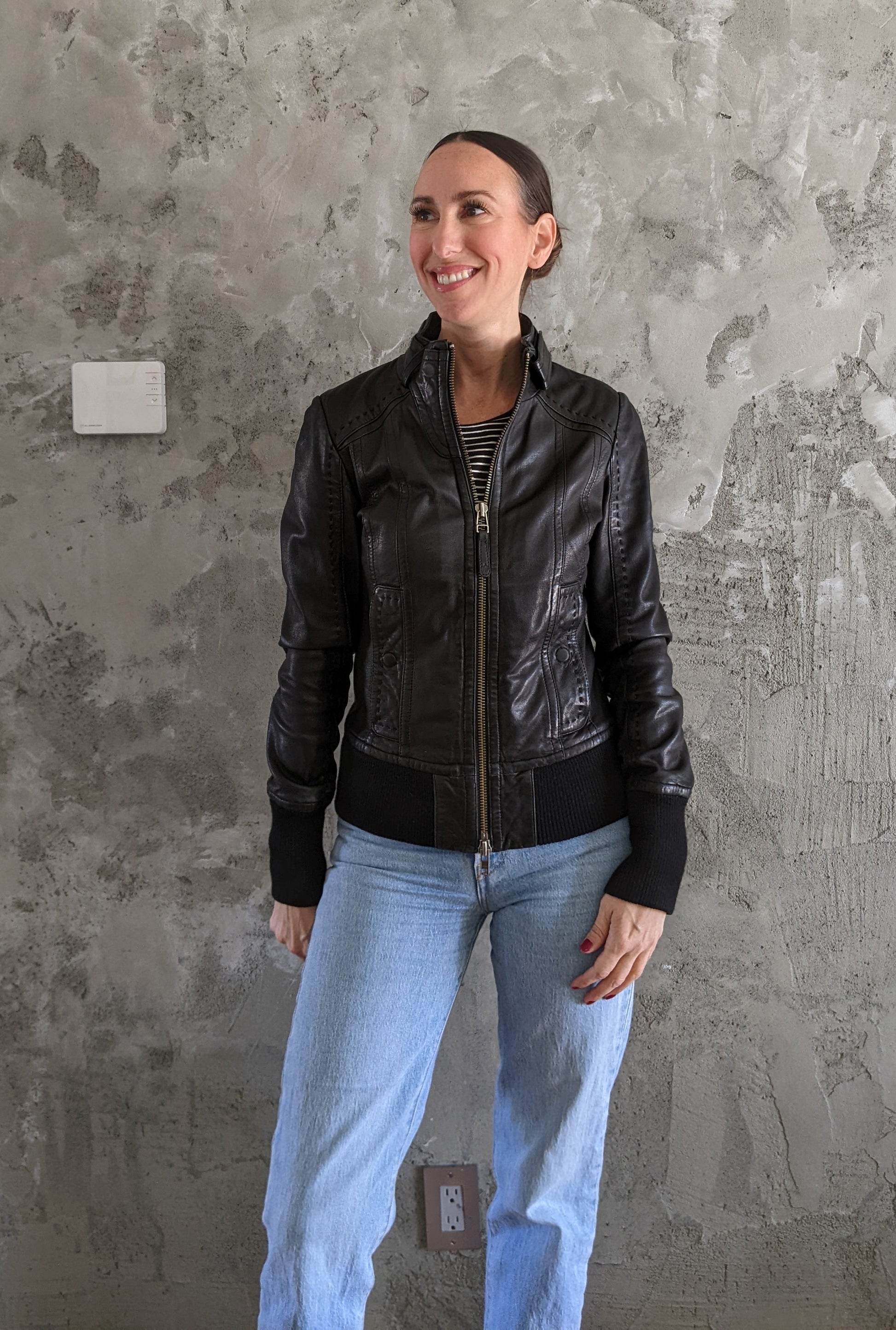 Zip up bomber jacket in a soft supple leather. Excellent condition!