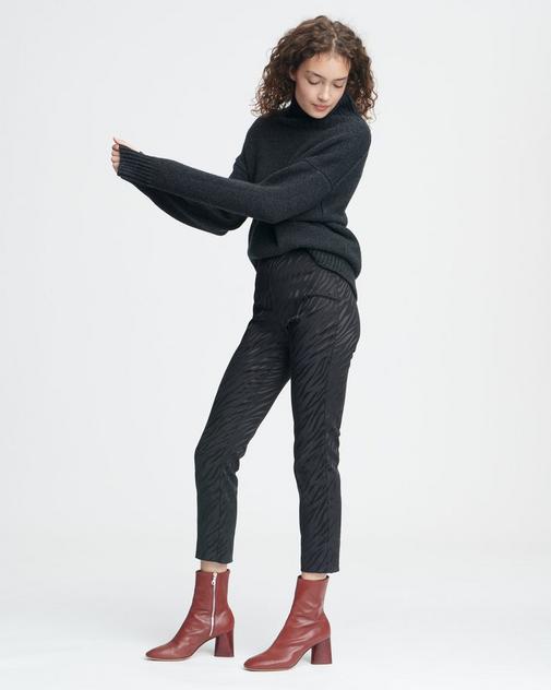 An update to our bestselling Simone Pant. High rise, cropped length, now with zebra-print Italian jacquard fabric.