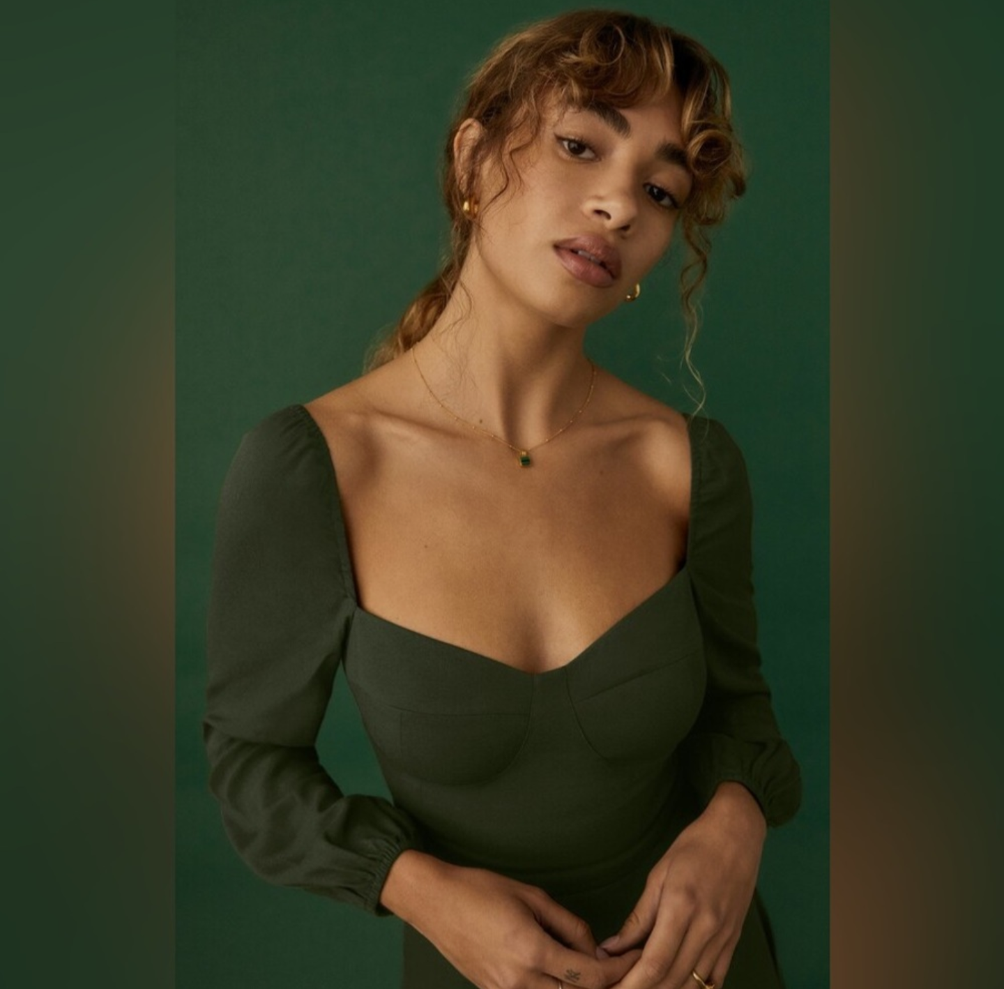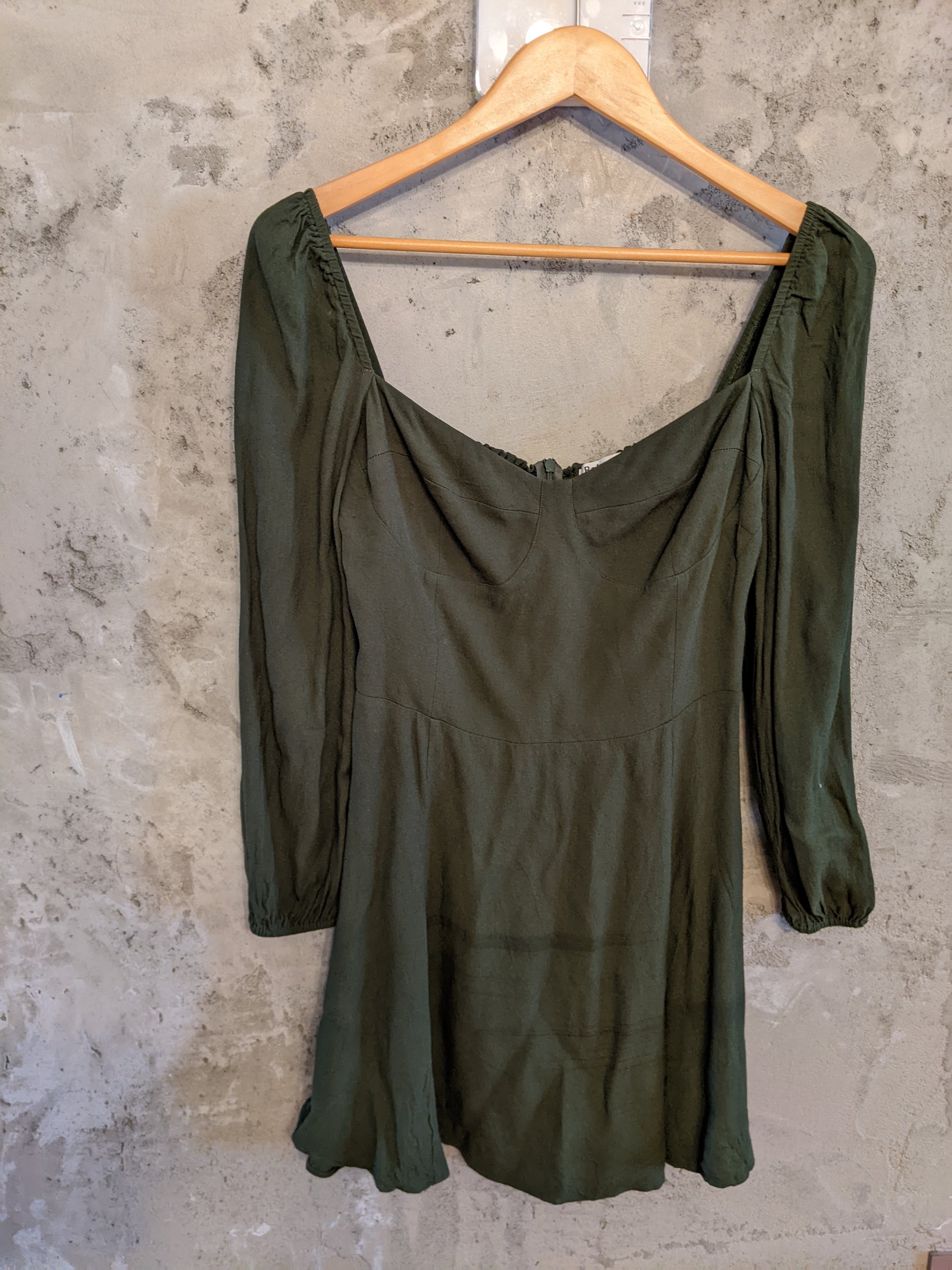Made using wood pulp from responsibly managed forests, it features a sweetheart neckline, long sleeves, shirred elasticated back panel, concealed zip fastening, and a loose skirt. The Mochi is tight fitting in the bodice with a flared skirt. It gives the dress some structure while leaving plenty of room for comfort. The sleeves are loose fitting with elastic at the sleeve opening.