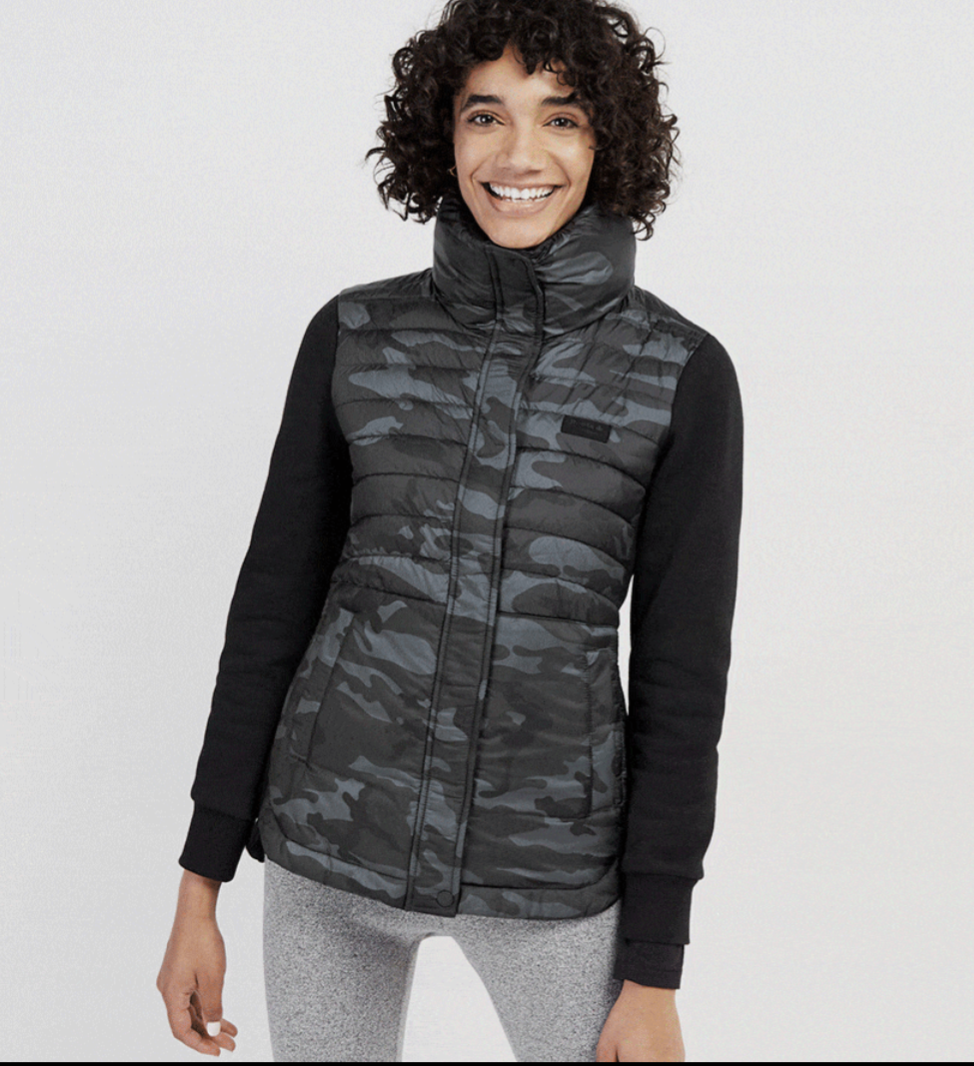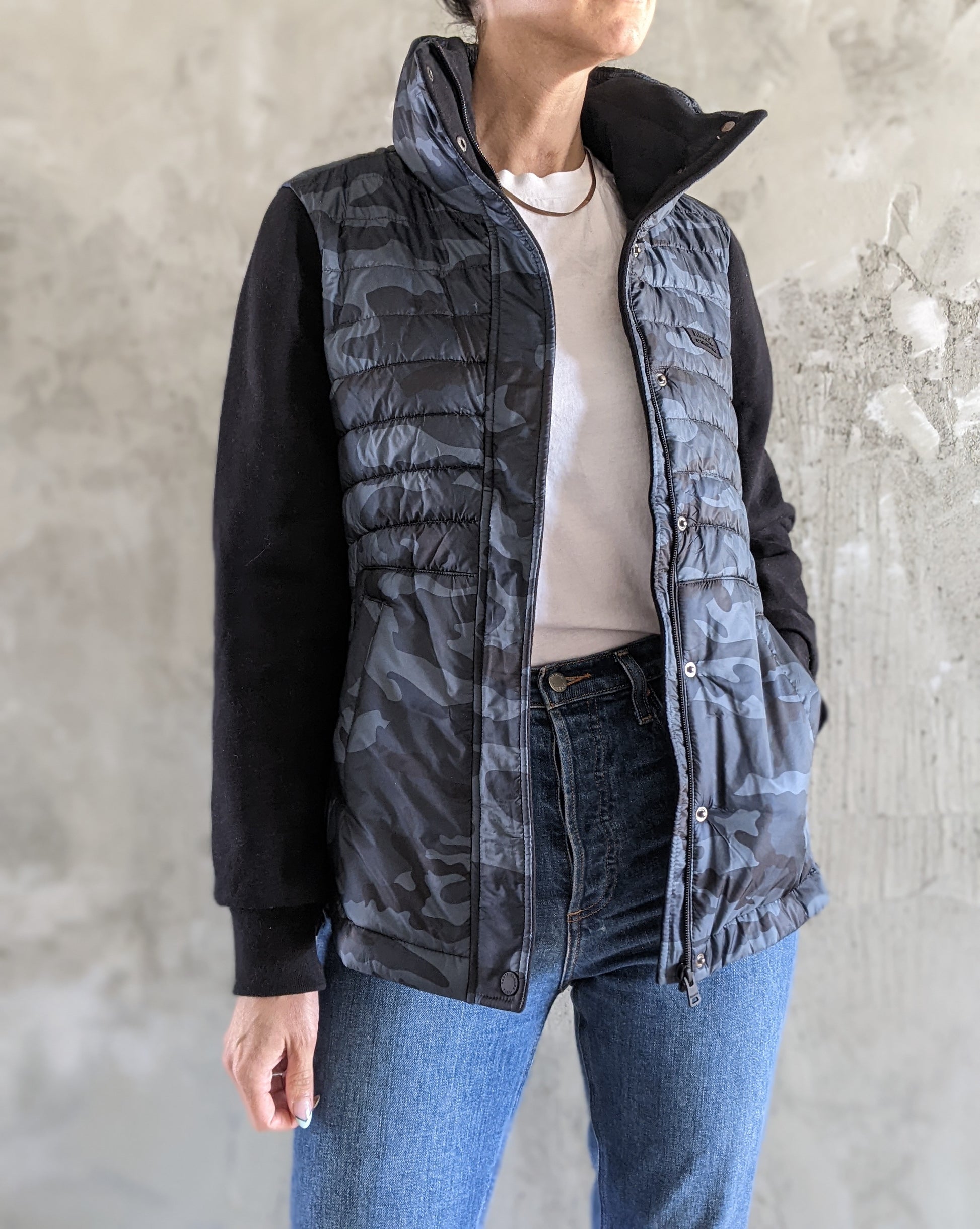 Super soft lining, quilted puffer jacket with sweatshirt sleeves