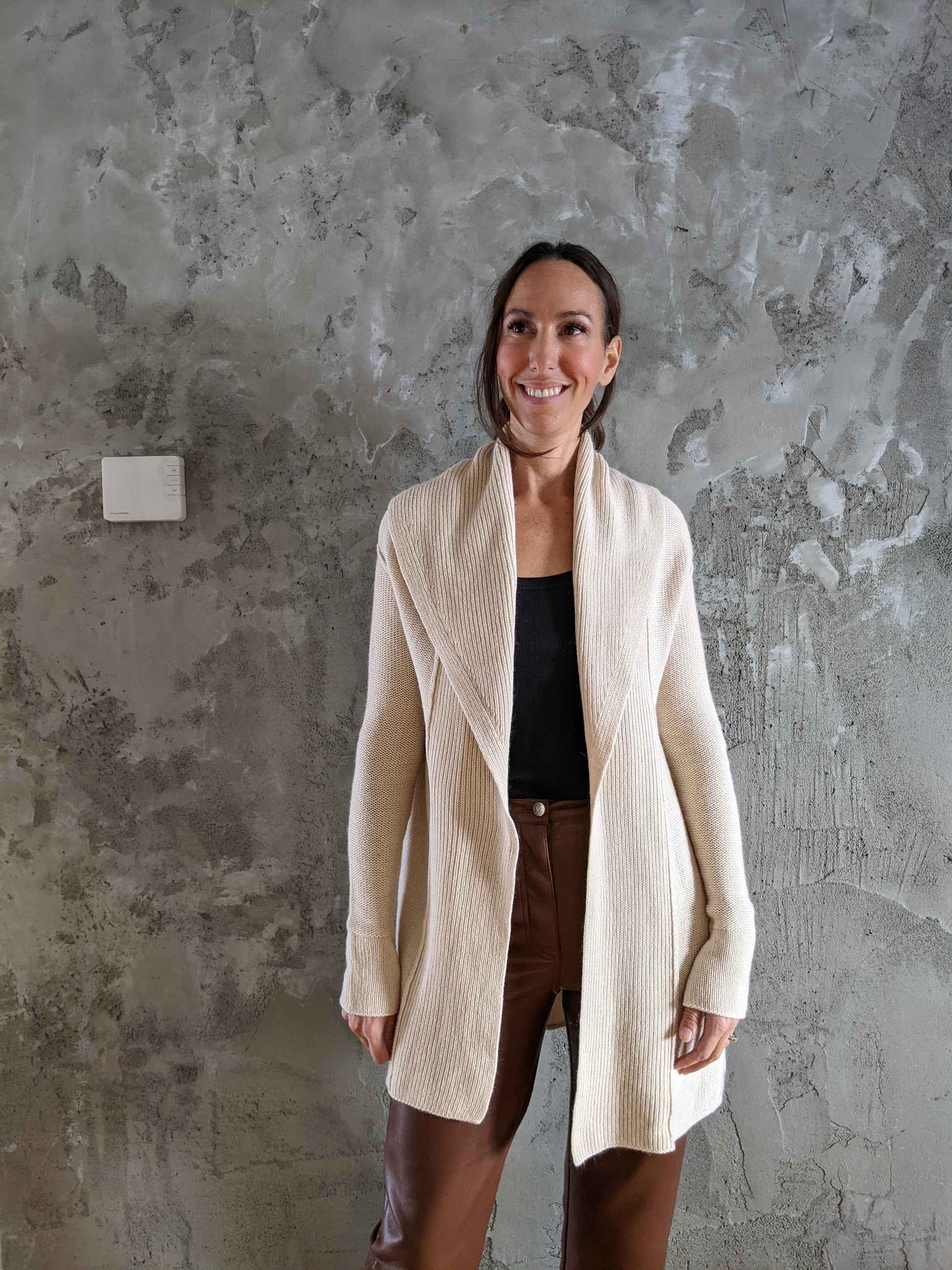 40% cashmere gives this cardigan a super soft feel. Open style is flexible for fit