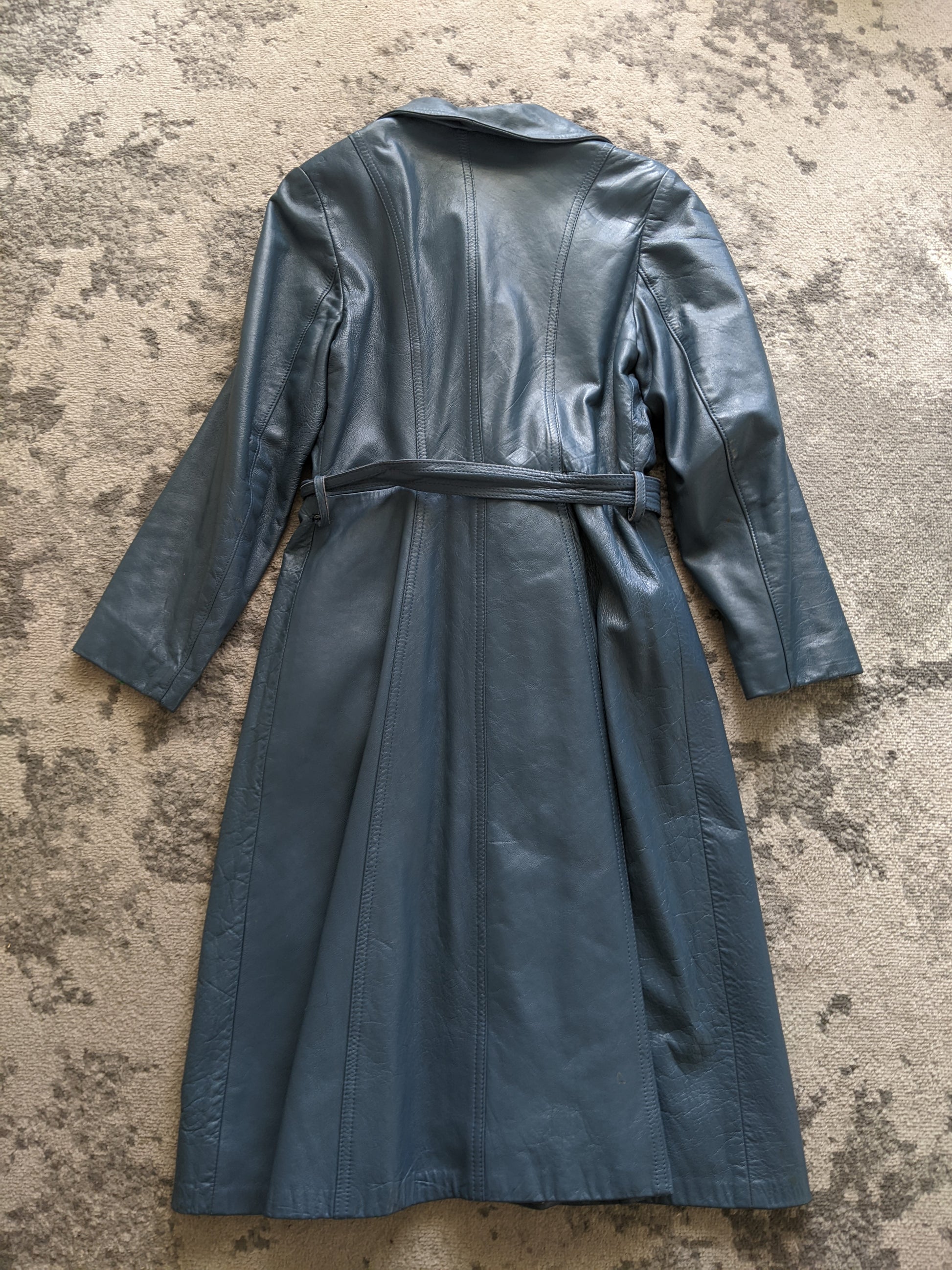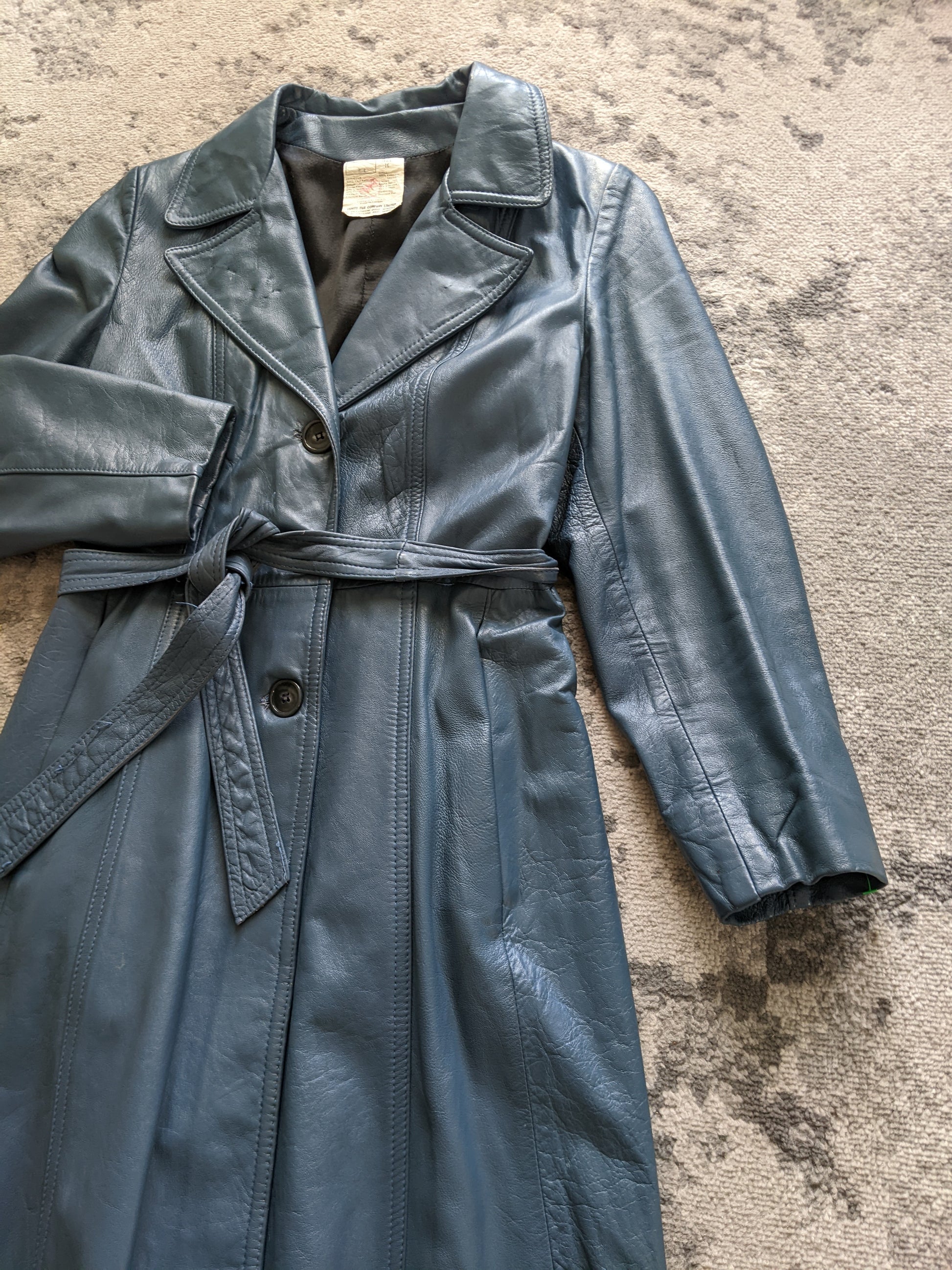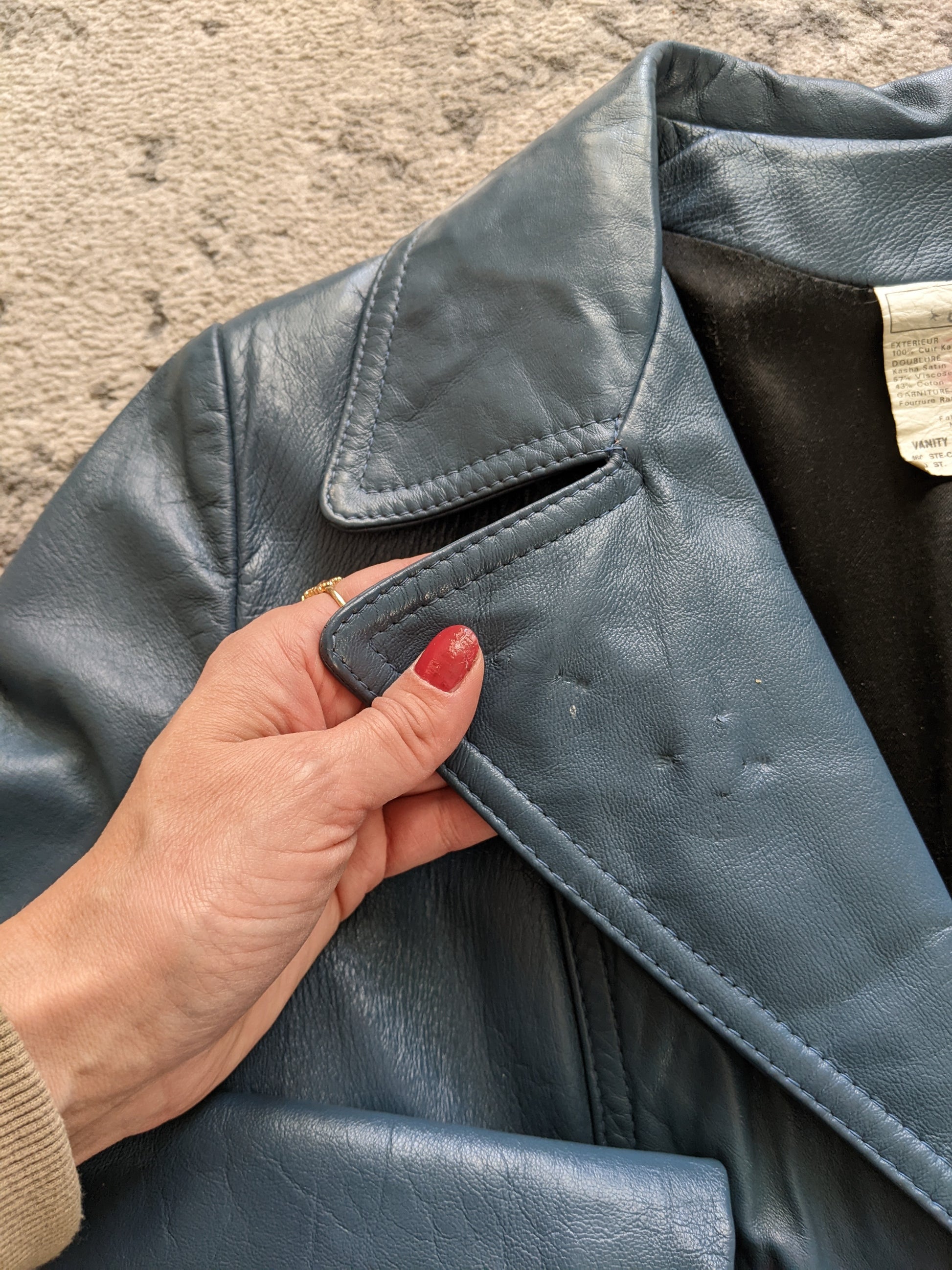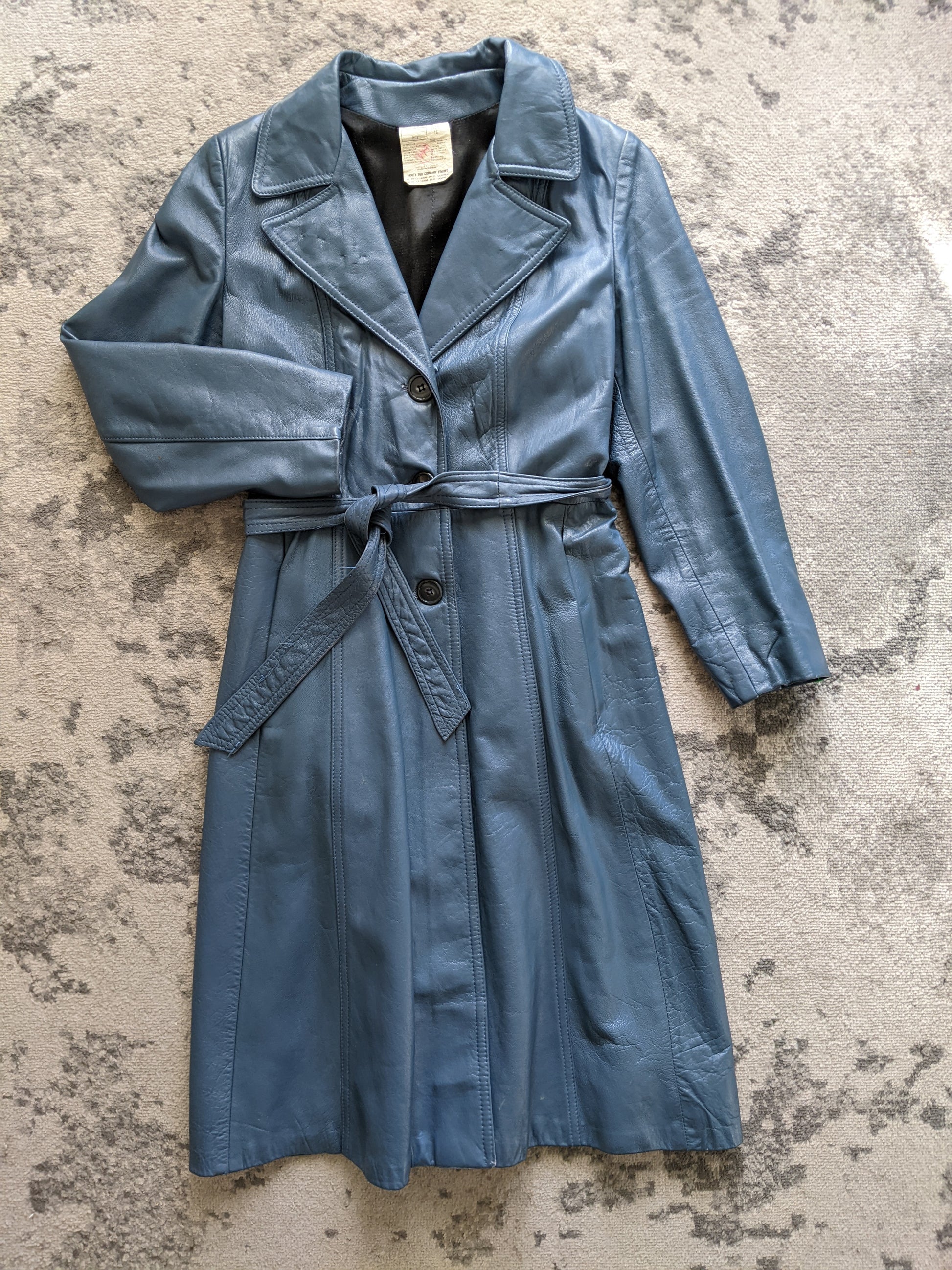 Vintage blue genuine leather trench coat sz 16 (fits like S/M!)