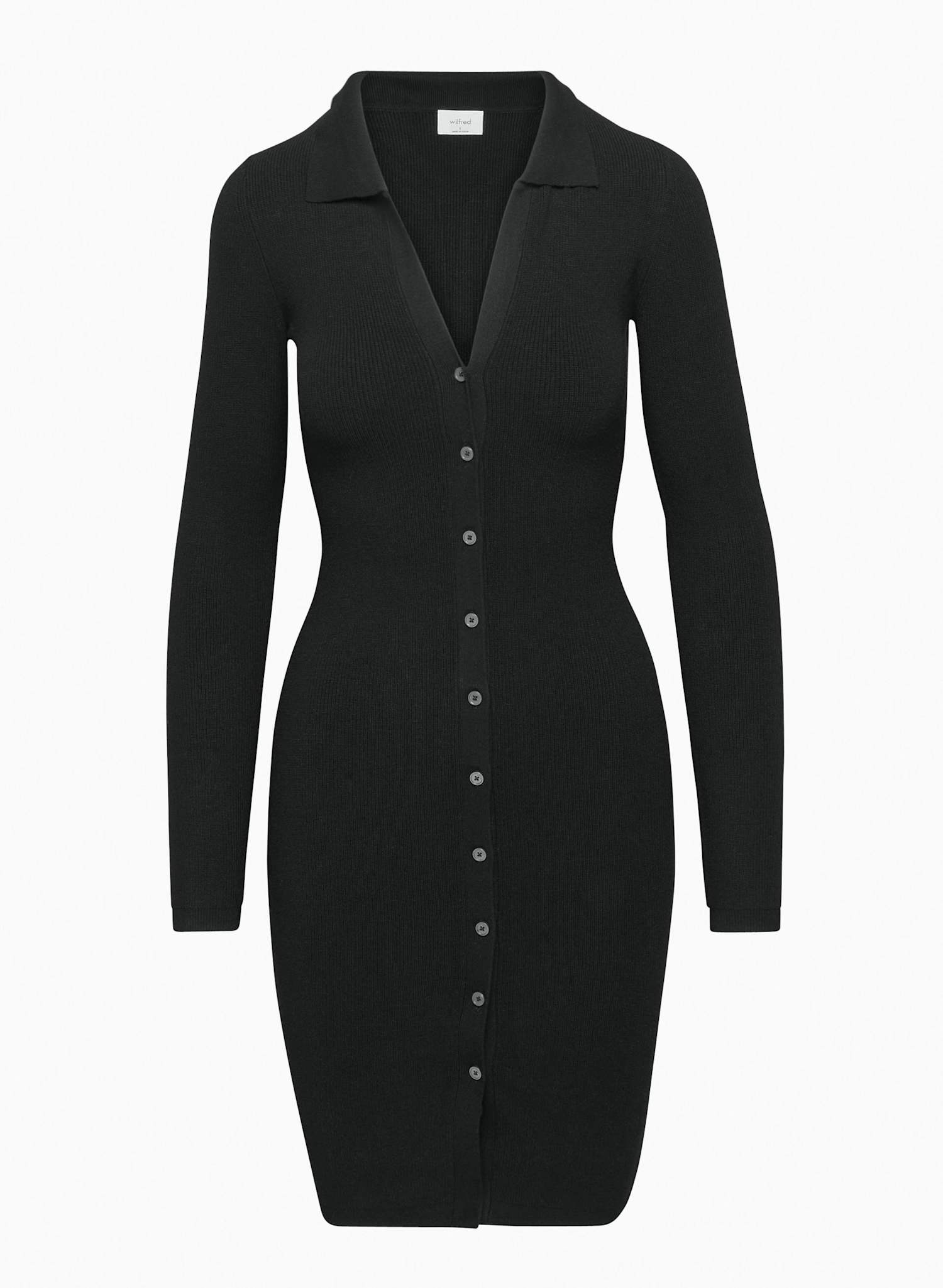 Triple threat. This is a fully fashioned button-up sweater dress. It’s knit with Wonder Yarn — the lightweight yarn that lives up to its name. This peachy-soft yarn offers the all-season warmth of wool, without the wool. It’s made with LENZING™ ECOVERO™ Viscose — responsibly sourced wood-based fibres produced through a process that reduces impact on forests, biodiversity and water supply. It’s constructed using a Half Cardigan stitch with distinct vertical ribs for a three-dimensional look and feel.