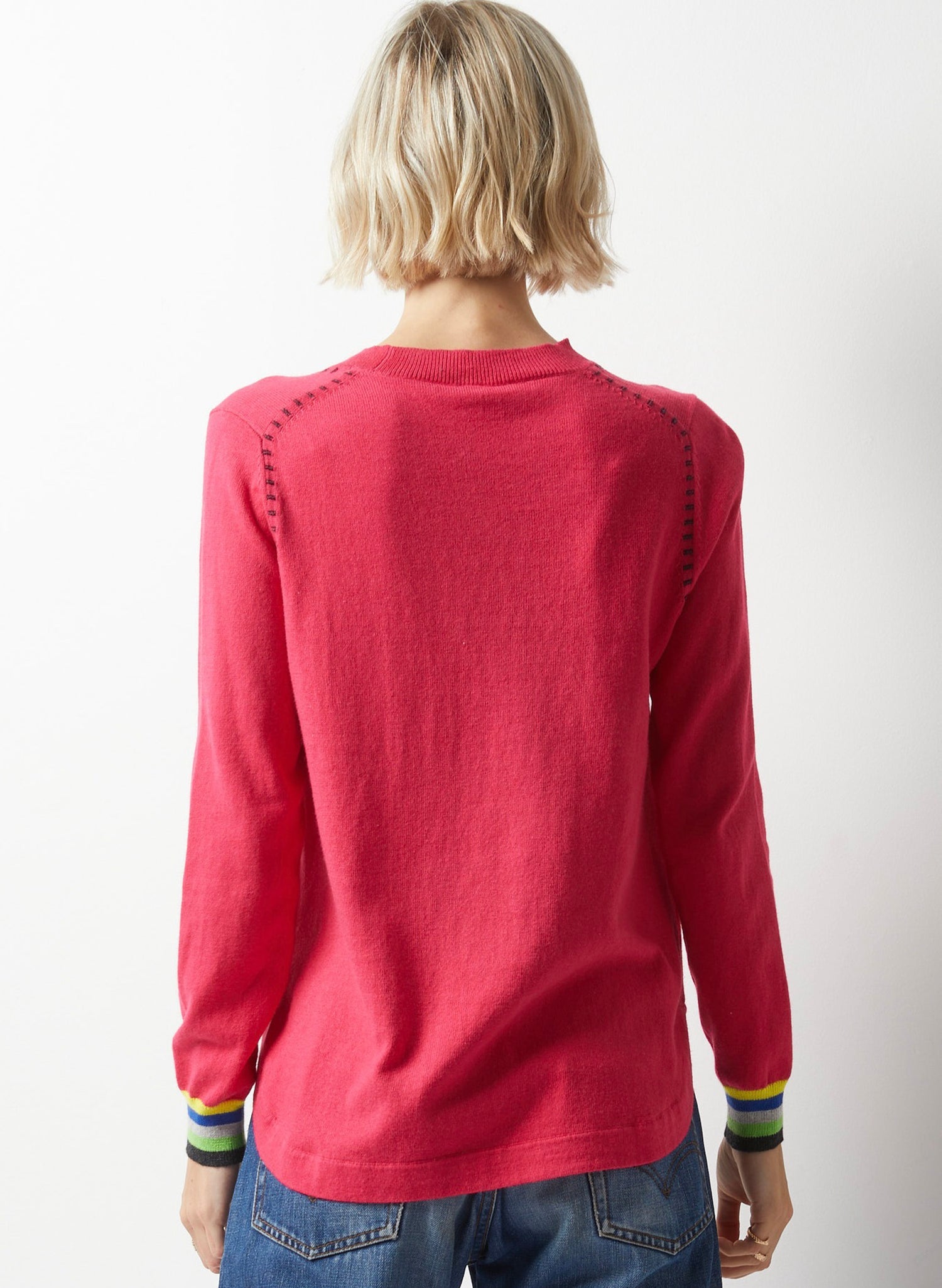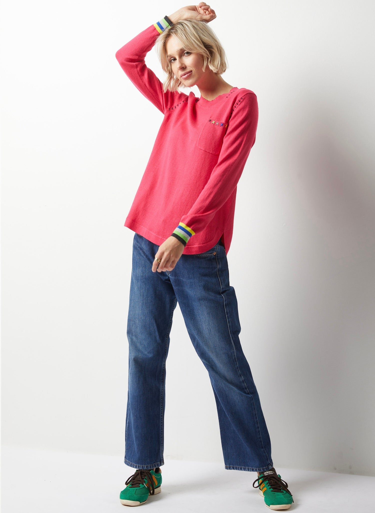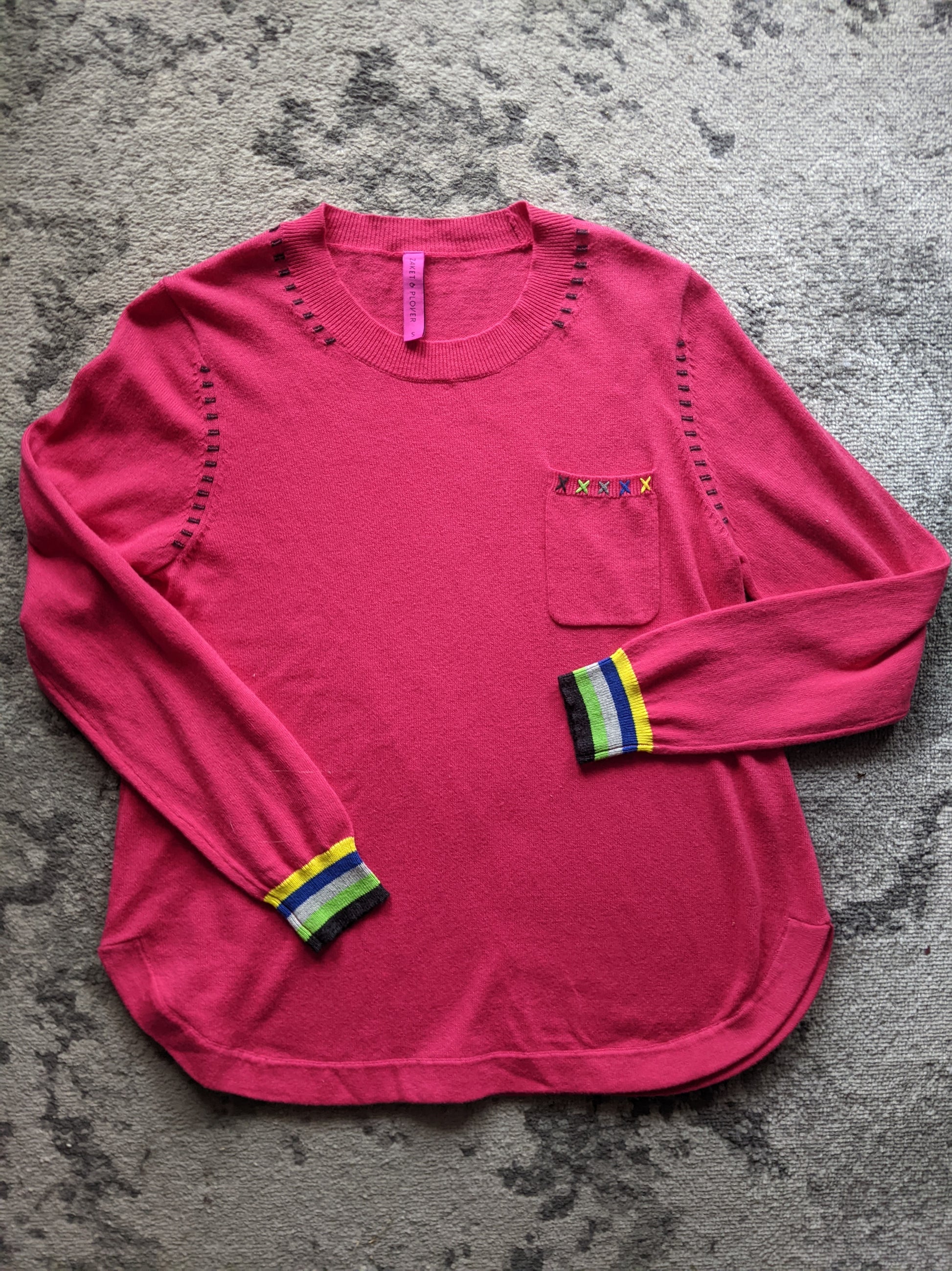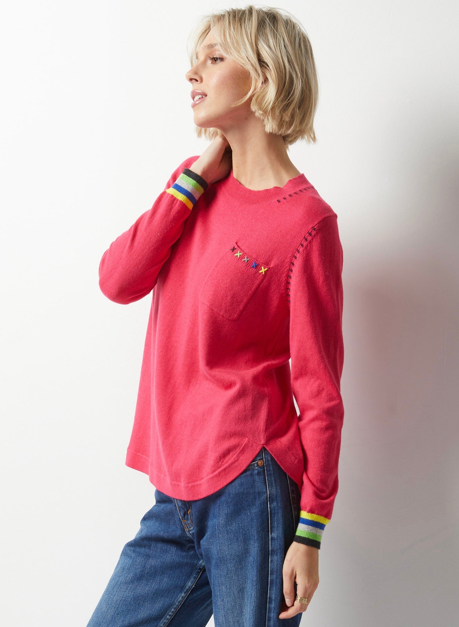 Made from a cozy cotton and cashmere mix, this sweater is flattering and fun! Embrace comfort and fashion with this handcrafted piece!
